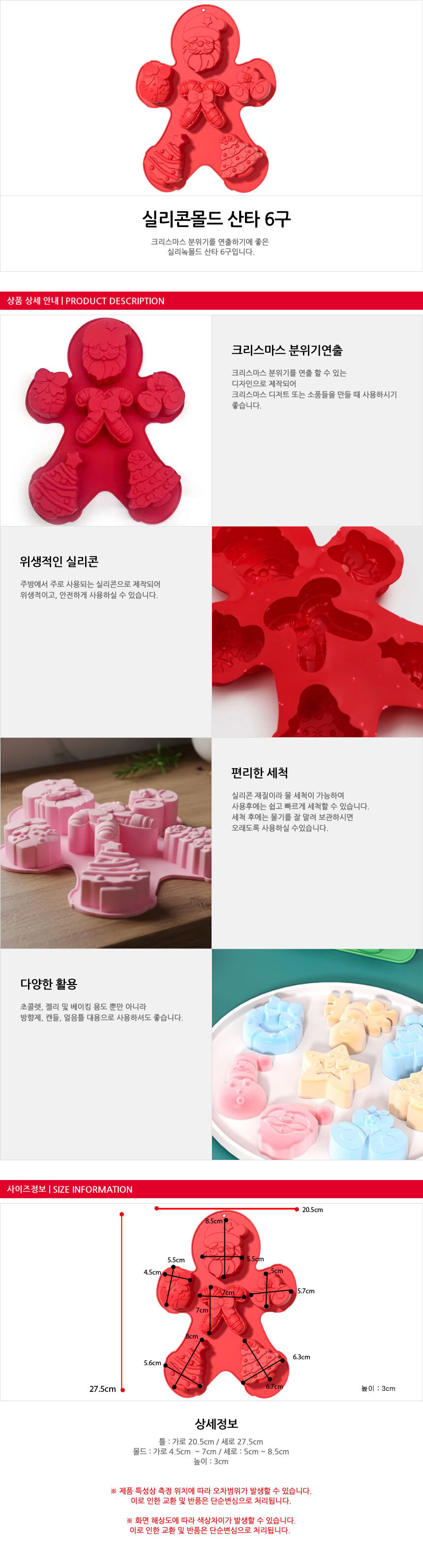 | 구성품 | 실리콘몰드 산타 6구 1종 |