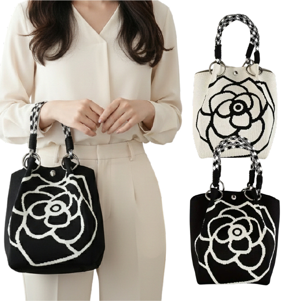 제품명[이거찜] 로즈라인 미니백 여성 토트백 플라워 패턴 데일리 가방 숄더백