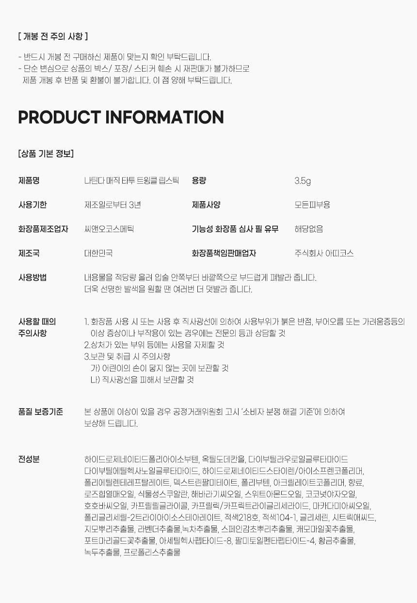 제품명나틴다 매직 타투 트윙클 립스틱