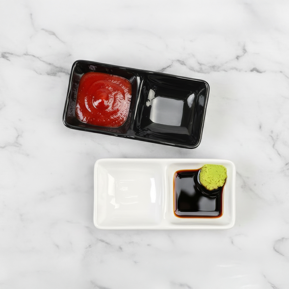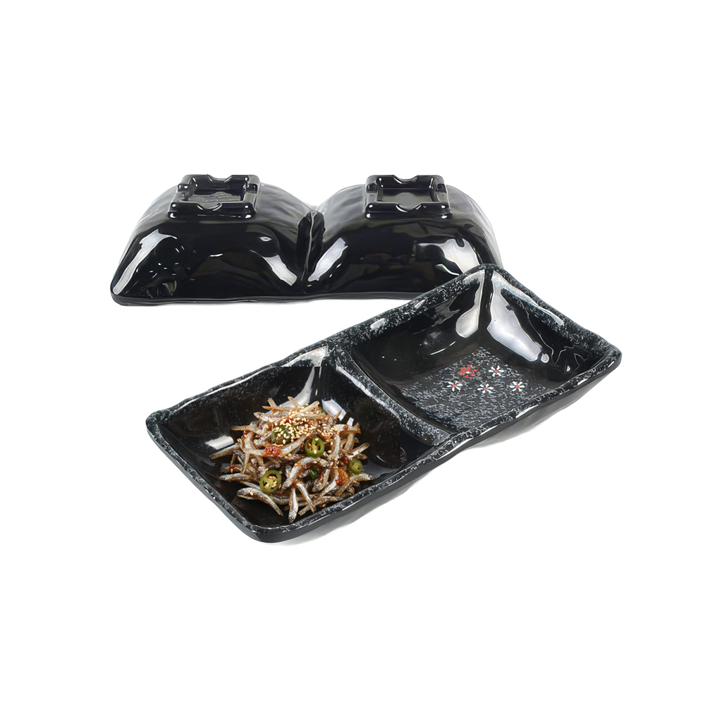 가정 업소용 멜라민 2구 사각 양념접시 소스 종지 반찬그릇