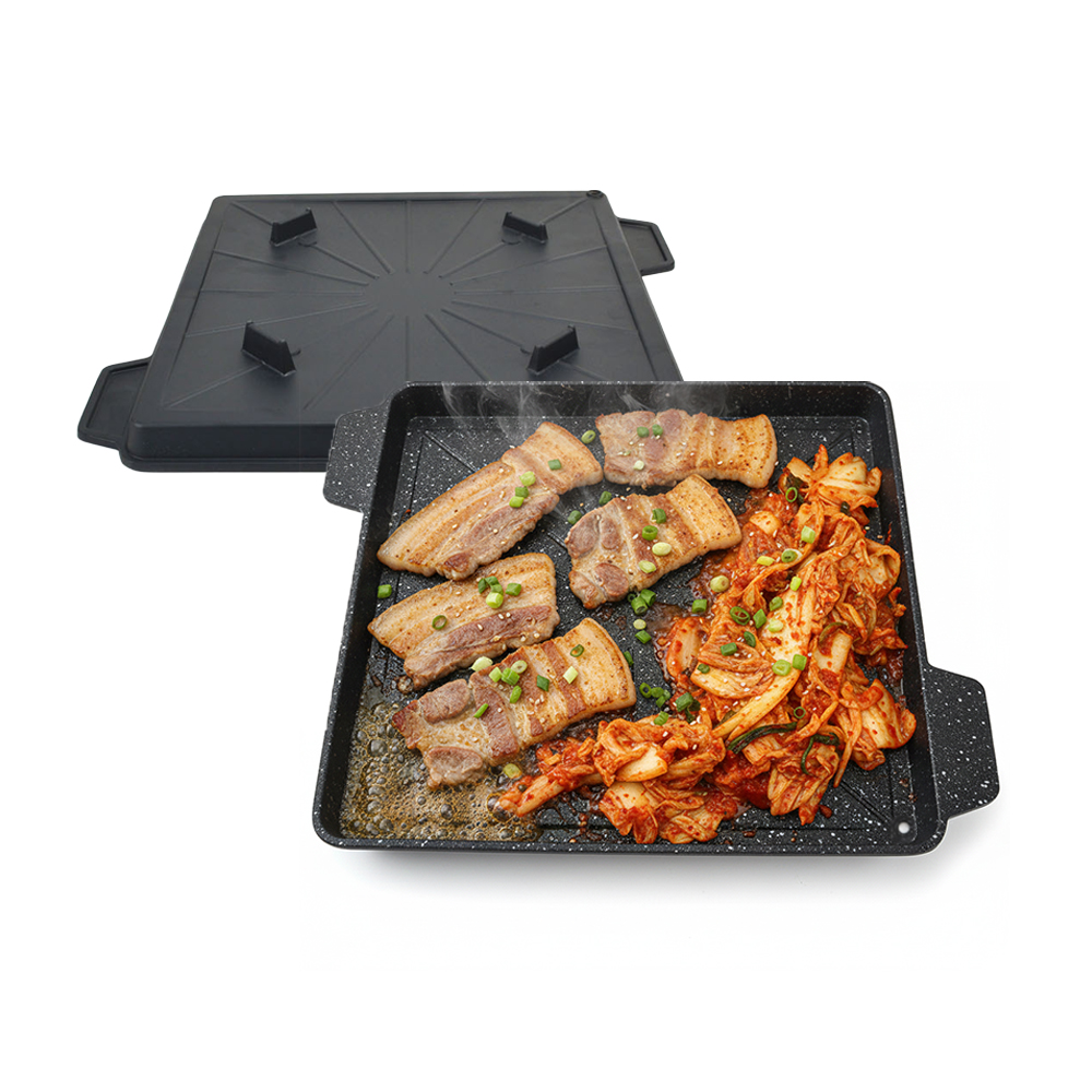 캠핑용 사각 알루미늄 코팅 고기 불판 삼겹살 구이팬 기름구멍