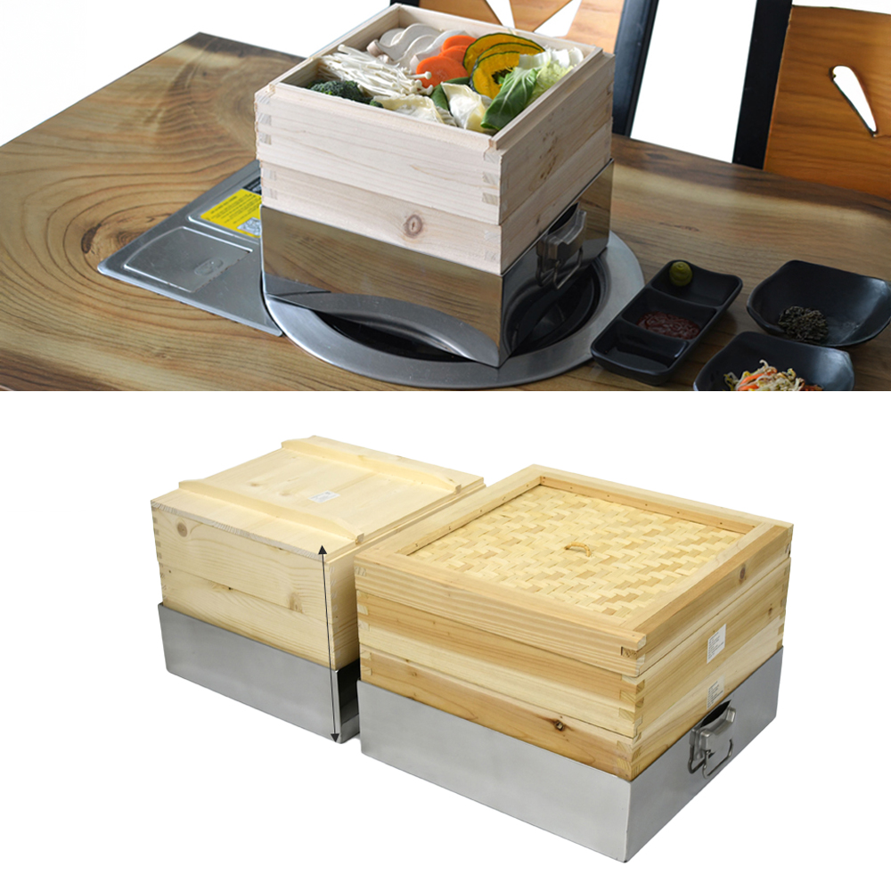 업소용 2단 정사각 찜기 세트 삼나무 가문비나무 찜솥